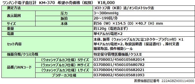 ワンハンド電子血圧計 KM-370 レジーナ